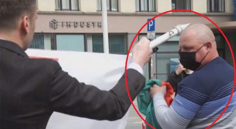 История с осквернением белорусского флага в Риге обрастает новыми подробностями. В принципе, все об этом догадывались, но вот доказательств не было. Ресурс RuBaltic обнаружил что процессом руководил сотрудник американского посольства в Латвии. Более того, этот персонаж не только координировал спецоперацию, но даже лично снимал белорусский флаг с флагштока.