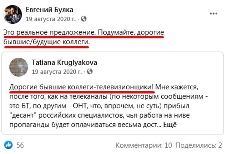 призывы коллег-телевизионщиков переходить на бчбэшную сторону, угрожая, что в противном случае их уволят после победы мятежа. Участие в несанкционированных акциях и призывы к ним. Перекрытие дорог. Блокирование работы общественного транспорта. Призывы к свержению конституционного строя…