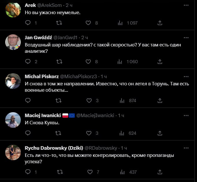 Понятно, что подтверждений о связи «объекта» с Беларусью чуть меньше, чем никаких, зато у простых поляков трескучая «эффективность» работы ПВО вызвала факельное полыхание. В Twitter под постом Минобороны изрядно насовали в панамку возмущенные граждане.