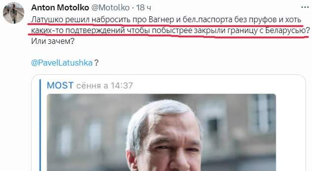 Кто в этой ситуации выглядит полной дурой — для всех очевидно. Поэтому инфообслуга срочно уводит котлетосину из-под удара. Крайним решили сделать болтливого алкоголика. Бессмысленный «министар» хрен знает чего на свою голову распустил язык и, желая показать свою значимость и информированность, бредил про «выдачу белорусских паспортов вагнеровцам», которые уже стоят в очередях на въезд в Польшу. Этого оказалось достаточно для других паразитов, чтобы обвинить лахушку в том, что он подставил змагаров и это из-за него соседи закупоривают границы с РБ. До объявления пьянтоса агентом КэйДжиБи осталось 3… 2…