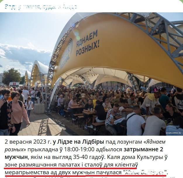 В Лиде на фестивале «Лидбир» парочку бчбшников и по совместительству адептов «культа сьвяты захад» задержали правоохранители. Инфопомойки отсвечивают, якобы, невероятные в порыве экстаза от «вероломно организованного диктатурой» праздника рохкнули про «жуебелыгусь». Отдельно доставила локация: рохкнули в зоне размещения палаток и столов для посетителей, что как бы намекает на вероятность затейливых алкогольных кондиций крикух.