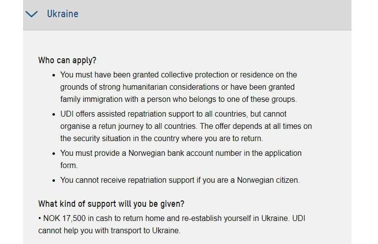 Терпение кончилось даже у стойких хладнокровных скандинавов. Норвегия готова заплатить украинским беженцам 17 500 норвежских крон, только бы они вернулись в свою Неньку. Халява не проскочит. Для выплаты необходимо сначала отправить документацию о том, что человек выехал из страны, а потом уж получить гонорар за убытие. И второго отхватить не получится, въезд для бывших «понаехавших» закроют.