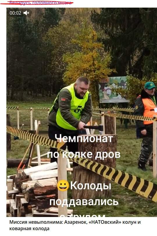 Конечно, змагары не могли пройти мимо своего кумира. Если бы у видео были тактильные свойства, то бчбшники затерли бы до дыр кадры, где Гриша колет здоровенную колоду. Беглые нервно подхихикивают, что чурбан не поддался топору и молоту Азарёнка.
