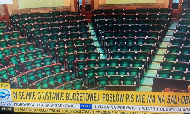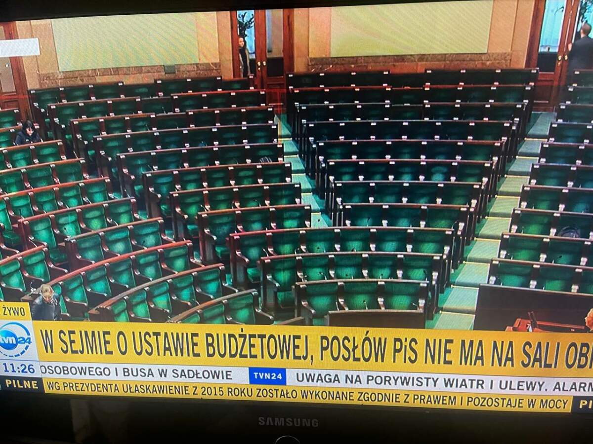 Вчера прикрыли национальное телевидение, а сегодня вот решили еще и Сейм опрокинуть. Партия «Право и справедливость», у которой 194 парламентских места из 460, сегодня полным составом не явилась на сессию, где рассматривается бюджет на следующий год.