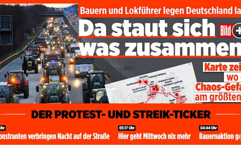Это, видимо, только начало большого хапуна бюргеров. По сообщениям немецких сми, на вчерашнюю акцию протеста против безмозглой политики правительства «ливерной колбасы» фермеры вывели 100 тысяч тракторов по всей стране. А были еще тысячи единиц другой техники. Соответственно, как минимум, столько же водителей, не считая пеших селян с «вилами».
