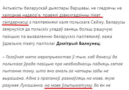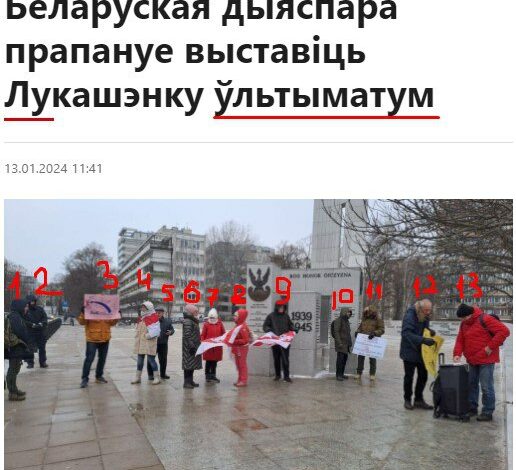 На этот раз 13 змагаров в минусовую температуру 2 часа простояли возле польского Сейма. А все для того, чтобы «рэжым» Лукашенко амнистировал экстремистов. И если этого не произойдет, то они объявят «рэжыму» ультиматум.