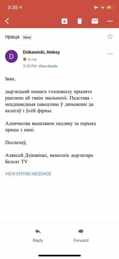 Чтоб Иван Шило понял быстрее, его сразу же удалили из всех чатов канала и отстранили от работы. А заместитель Агнешки, Леха Дзиковицкий, прислал на почту уведомление об увольнении: «Основание — неподобающее поведение в отношении коллег и всей фирмы».