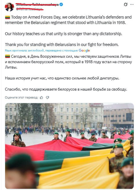 Вот ведь неожиданность, беглые поддерживают сторону, которая вполне не прочь уничтожить Беларусь. Предатели и позорища, просто в очередной раз в этом расписались.