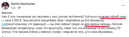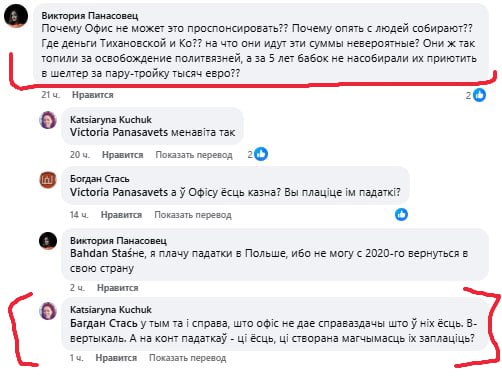 «Почему Офис не может это проспонсировать?? Почему опять с людей собирают?? Где деньги Тихановской и Ко?? на что они идут эти суммы невероятные? Они ж так топили за освобождение политвязней, а за 5 лет бабок не насобирали их приютить в шелтер за пару-тройку тысяч евро??»