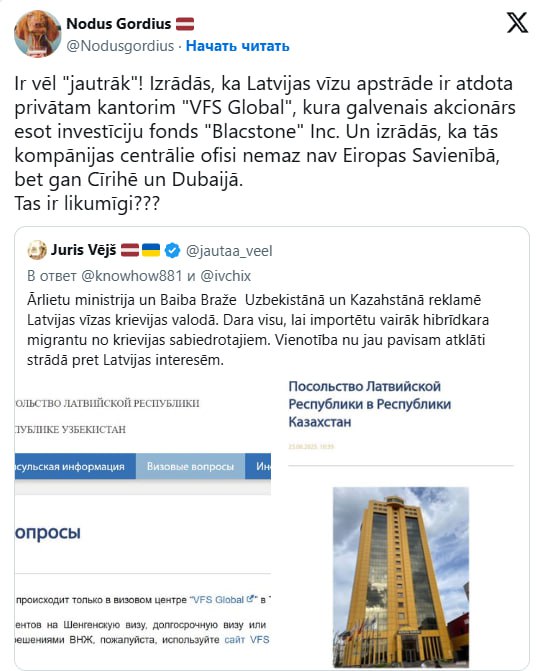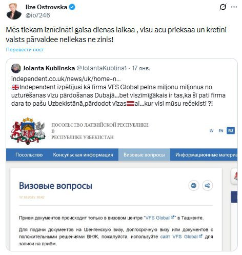 Оказывается, МИД Латвии рекламировал свои визы в Узбекистане и Казахстане на русском языке. И в этой новости прекрасно все — целых два повода для смуты.