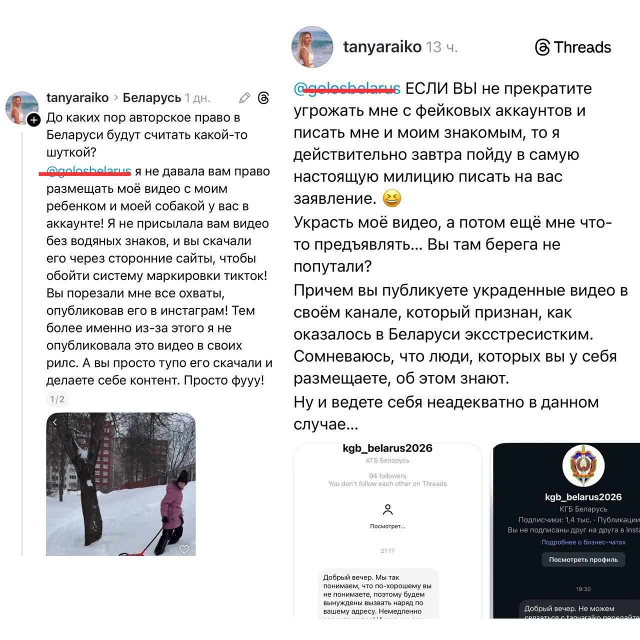 В своих экстремистских помойках он разместил видео с участием несовершеннолетнего ребенка. Несложно догадаться, что ролик он попросту спёр из сети, чтобы использовать его для тупых прогонов беглой пропаганды. Когда возмущенная мать попросила удалить публикации, ей не ответили, а после жалобы в ход пошли запугивания: пострадавшей начали писать с различных фейковых аккаунтов от лица якобы госорганов.