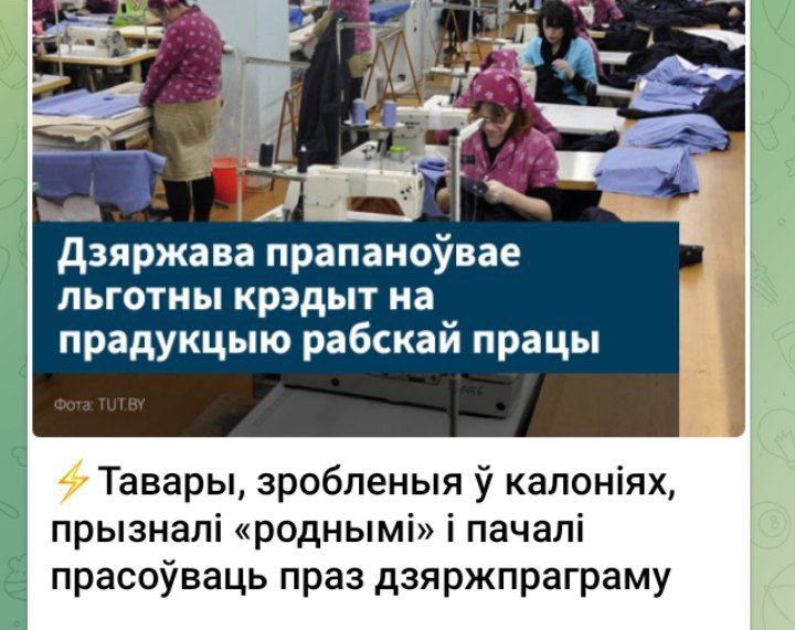 Экстремисты и террористы искупают свою вину перед белорусским народом, трудятся на благо народного хозяйства. И это не мартышкин труд, типа киркой камни дробить на каторге, как на Западе. Многие зэки, особенно политвязьни, с любовью сбивают ящики для снарядов РСЗО, очень ответственно подходят к пошиву милицейской и военной формы. Или к производству мебели. И государство помогает сбывать их продукцию, через дешевые креды для обычных потребителей в том числе.