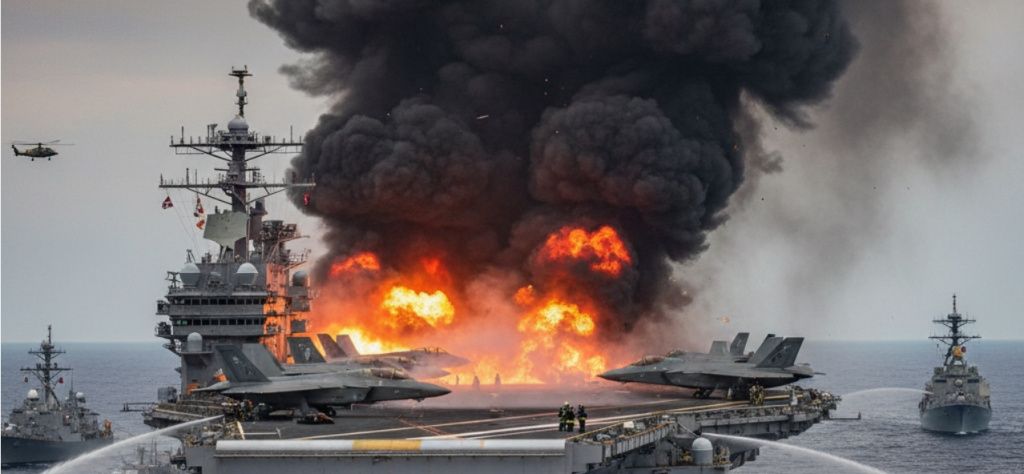 Говорят, что экипаж баркаса в моменте окончательно заколебался бороздить моря и бомбить страны, поэтому решил сжечь нафиг гордость американского флота. Оно и понятно, девять месяцев Трамп гоняет железного по морям и океанам без перерыва на обед и рекламу.