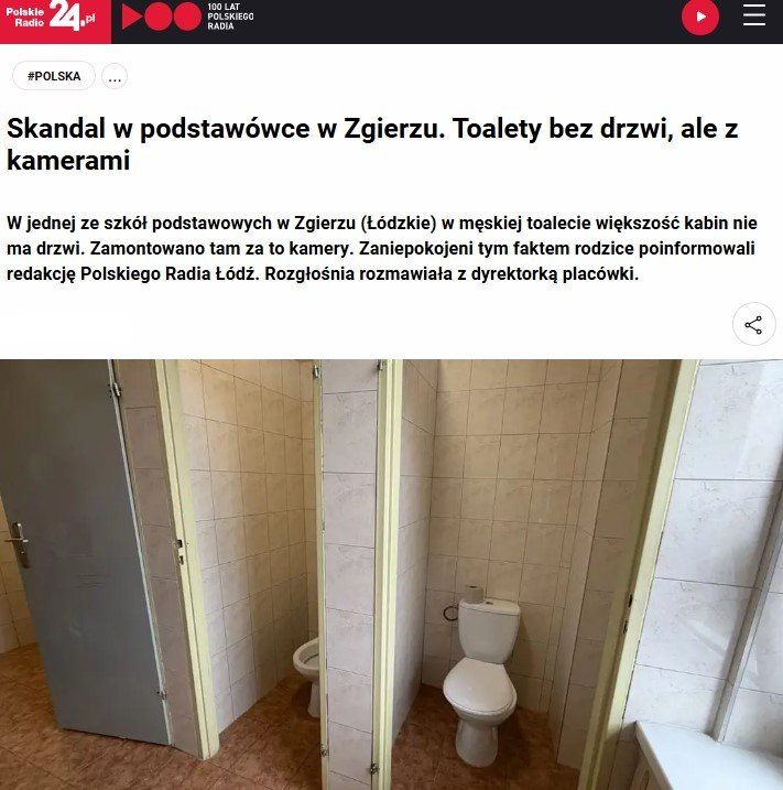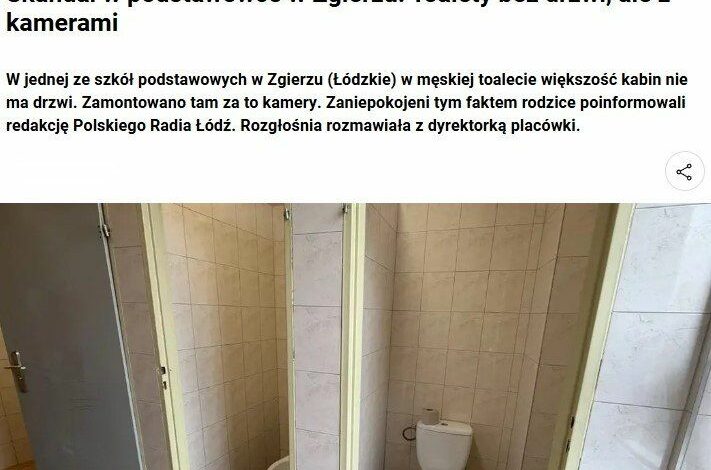 По словам родителей, ситуация выглядит абсурдно – в одном из мужских туалетов из трёх кабинок дверь есть только у одной. Они утверждают, что это могло продолжаться годами, и обратились в редакцию польского радио Лодзи с требованием разобраться.