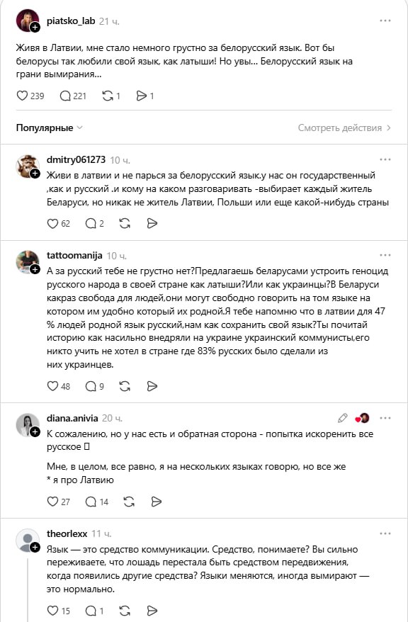 Поводом для обсуждения стали комментарии пользователя из Латвии о якобы существующем угнетении белорусского языка. Эти заявления вызвали активную реакцию со стороны белорусских пользователей, которые представили свою точку зрения на языковую ситуацию в стране.