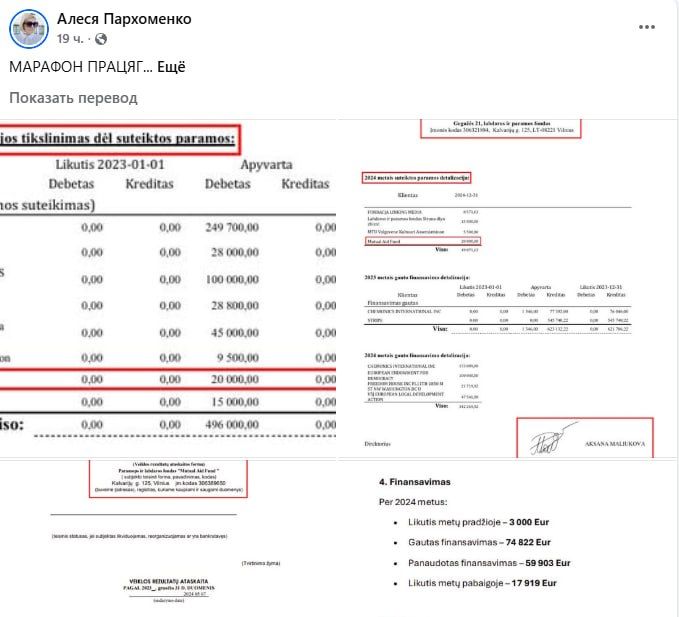 Среди них оказалась совершенно удивительная структура — Mutual Aid Fund. О ней никто ни разу не слышал ни до «марафона», ни после. Тем не менее этой фейковой конторе нибыта перечислили 40 тысяч евро. Но дальше самая мякотка. В годовом отчете этого фонда нет упоминания о получении этих средств. То есть 40 тысяч просто украли самым циничным образом!