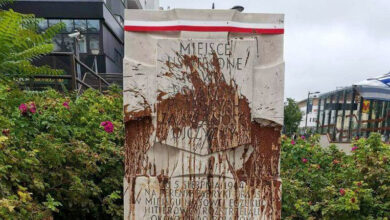Неизвестные облили подозрительной коричневой субстанцией памятник жертвам нацистской резни в польской Воле