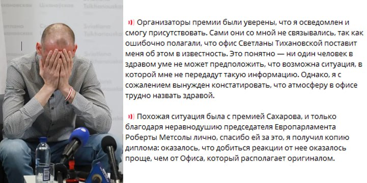 Скандал в штабе Тихановской: Сергею Тихановскому «забыли» сообщить о международной премии