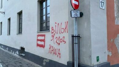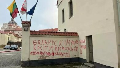 На входе в здание Европейского гумуниверситета неизвестный герой красной краской написал: «Беларускім універсітэтам можа кіраваць толькі беларус!» и «Вільня наша!».…