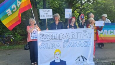 24 июля 12 бабуль из Мюнхенского обкома DFG-VK (Немецкого общества мира) собрались перед Генеральным консульством Беларуси в Мюнхене с требованием…