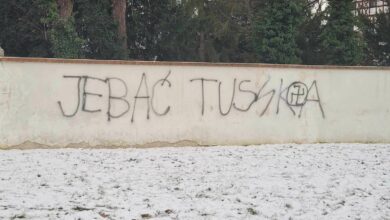 Недавно ругали PiS, сейчас — Туска. Кстати, с этой надписью вообще анекдот вышел. Мужика, ее написавшего, уже задержали, ему даже…