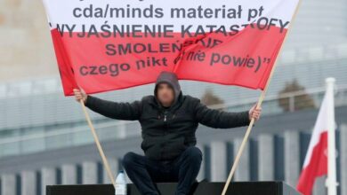В Варшаве мужика, который взобрался на памятник жертвам Смоленской авиакатастрофы, нейтрализовали при помощи гранат
